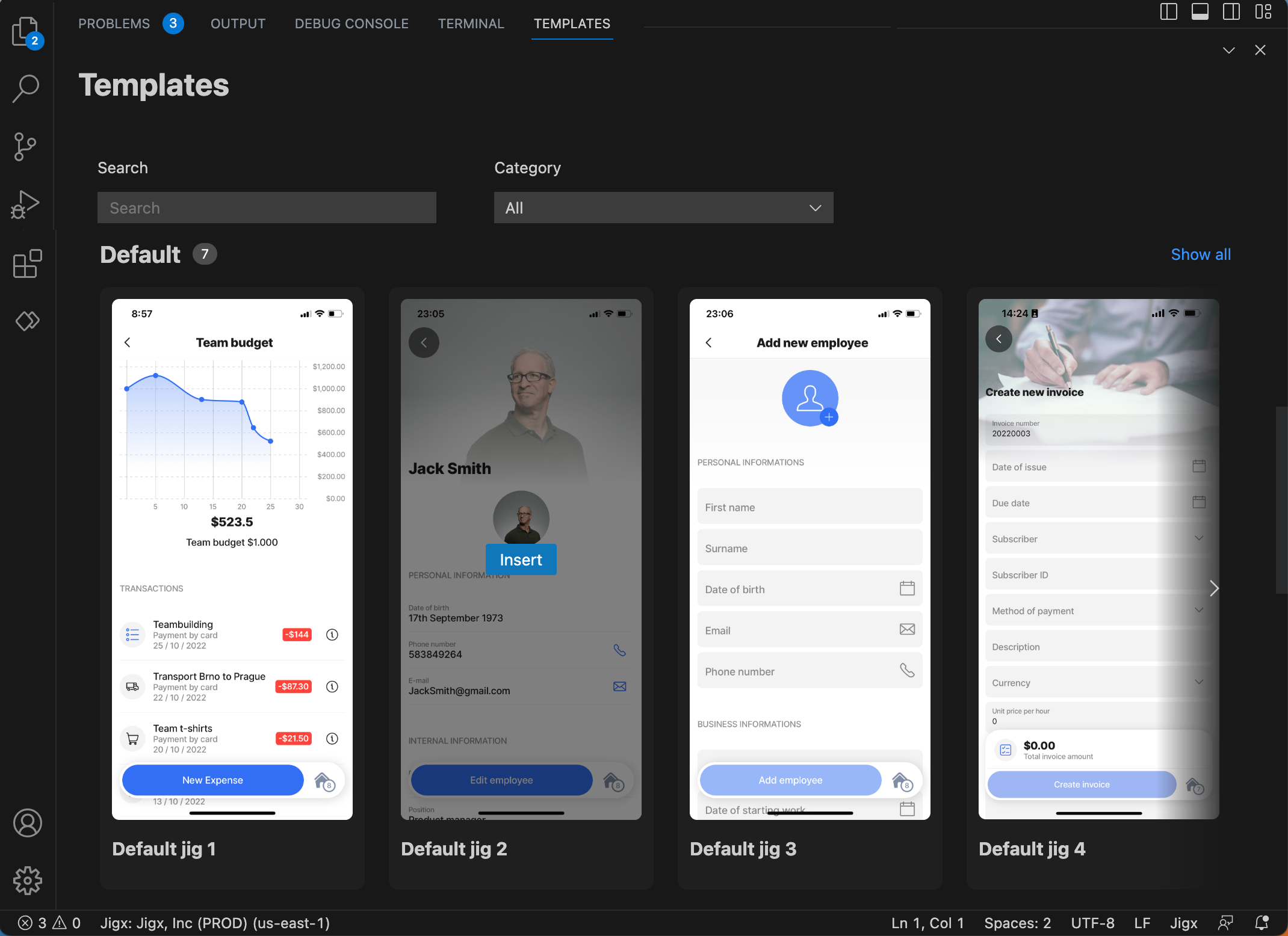 - Reduced Development Effort: Starting with pre-built features and components, templates also allow you to reduce your effort to implement standard features, and give you more time to develop unique features for your app. Because you’re writing on average a tenth of the code you would need compared to using frameworks like React Native or Flutter, maintaining your apps in Jigx is also even easier.
