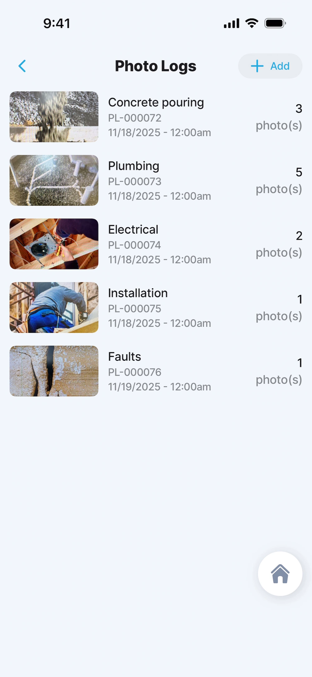 View and manage photo logs by category, create new categories, and capture or add photos on site—all in one place.