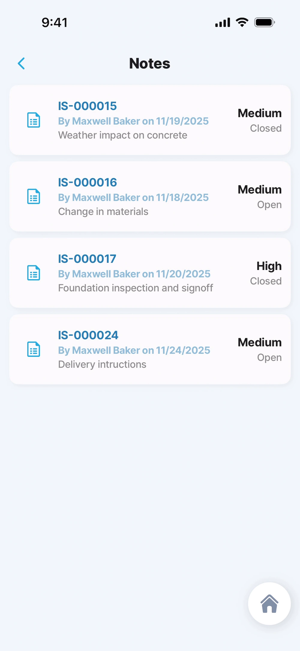 View open and closed project notes at a glance, see their status instantly, and update or add notes while on the go.